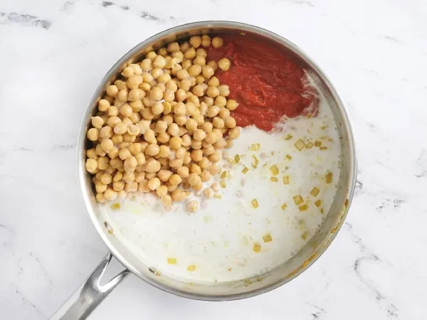 A plant-based powerhouse with chickpeas, coconut milk, tomatoes, and warming spices like cumin, coriander, and turmeric. Serve with naan or rice.
